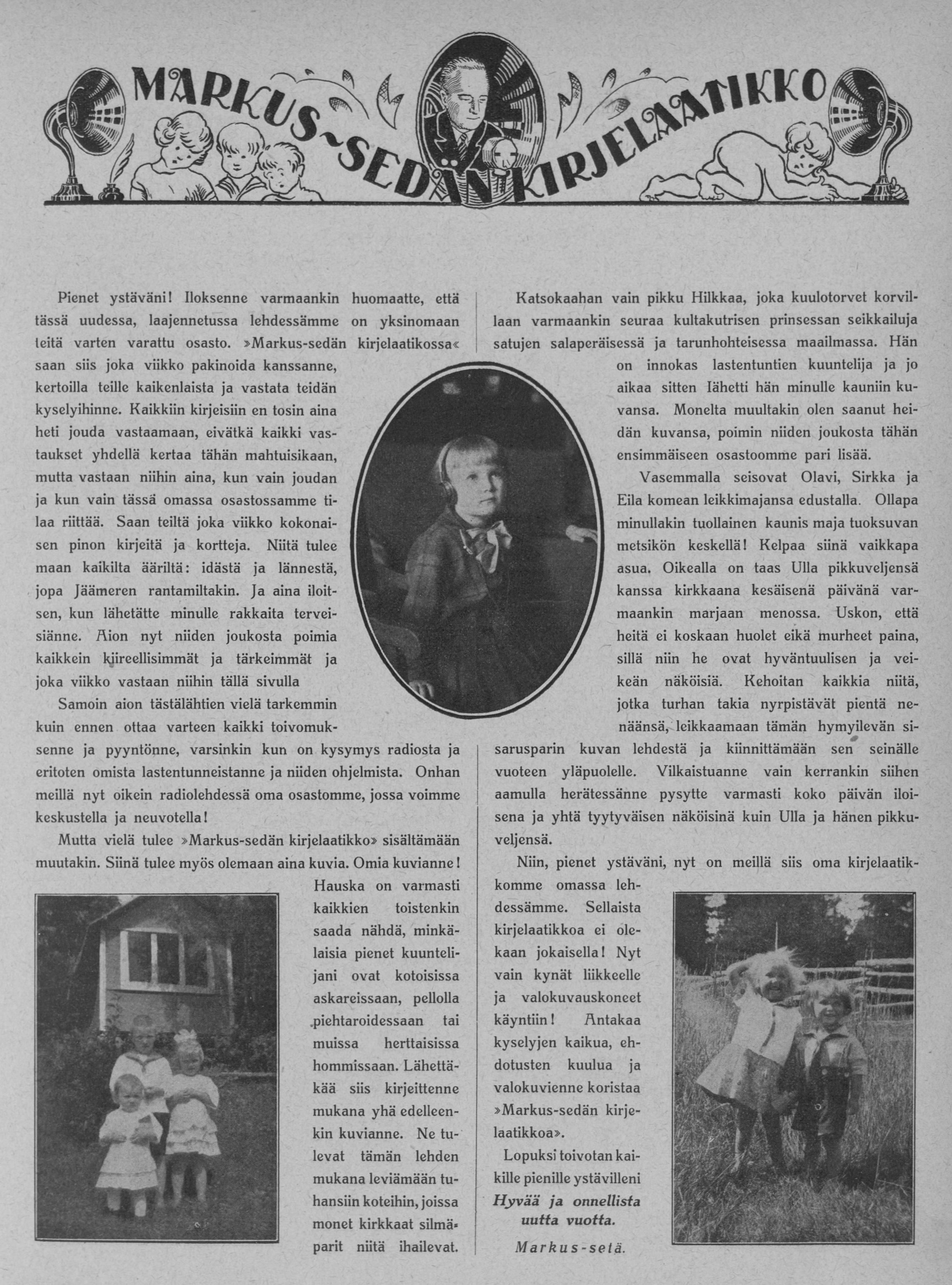 Markus-setä kaipaa onnellista lapsuutta. Helsingin Sanomat 17.5.1971, s. 7.