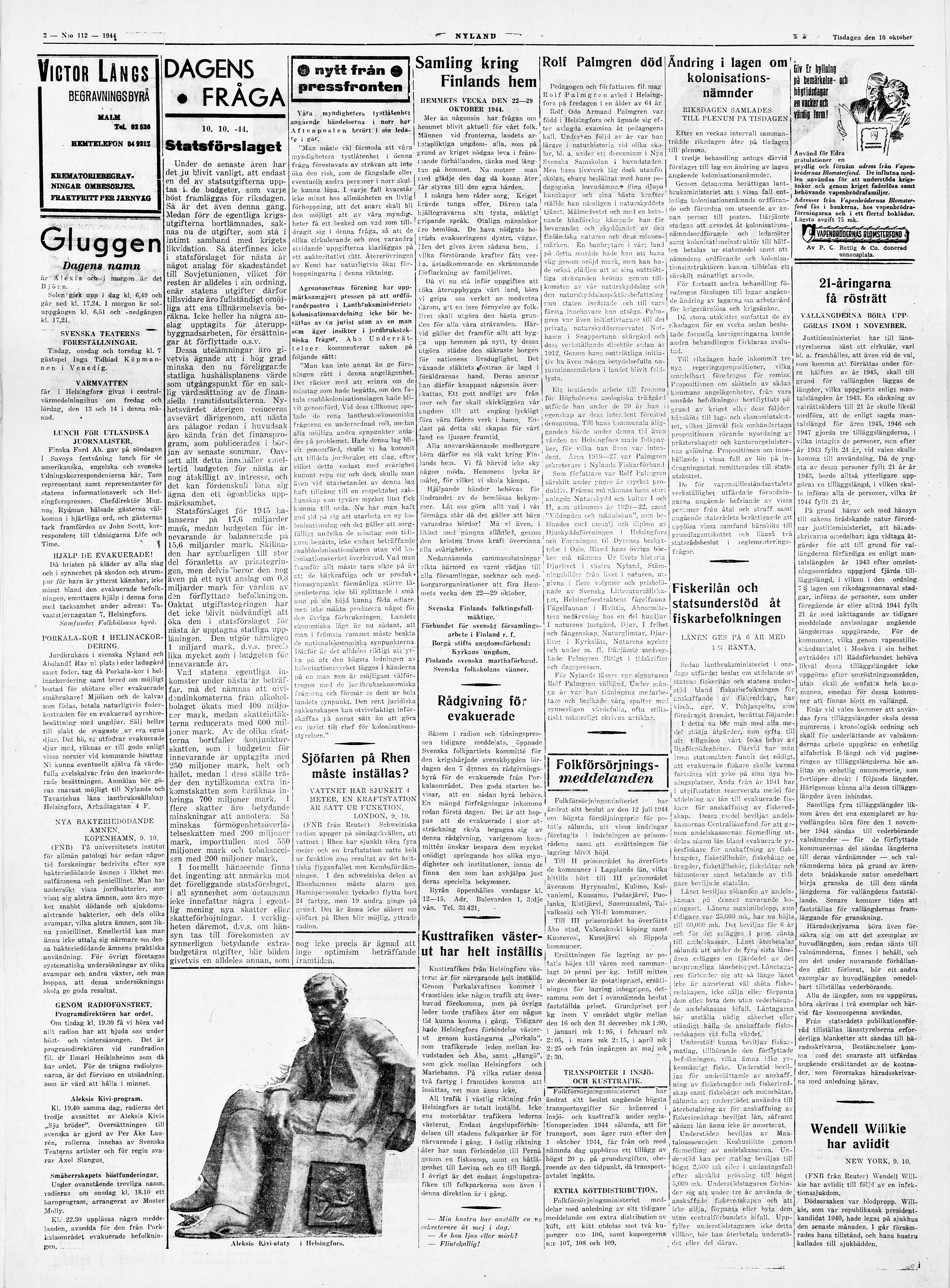 Rolf Palmgren död. Nyland 10.10.1944, s.(Linkki johtaa ulkoiseen palveluun) 2.