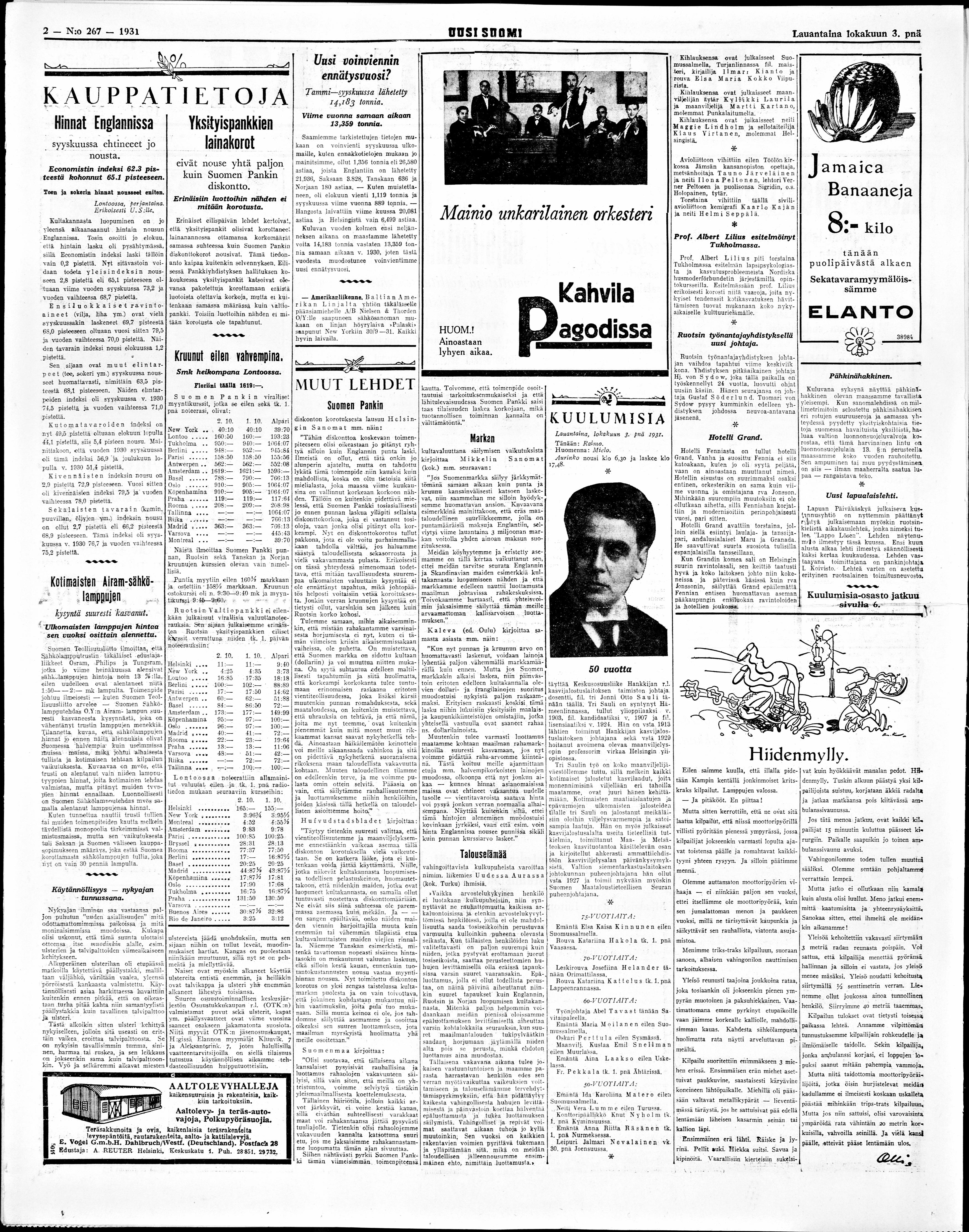 Kauppalehti 24.7.1931, s. 3.(Linkki johtaa ulkoiseen palveluun)