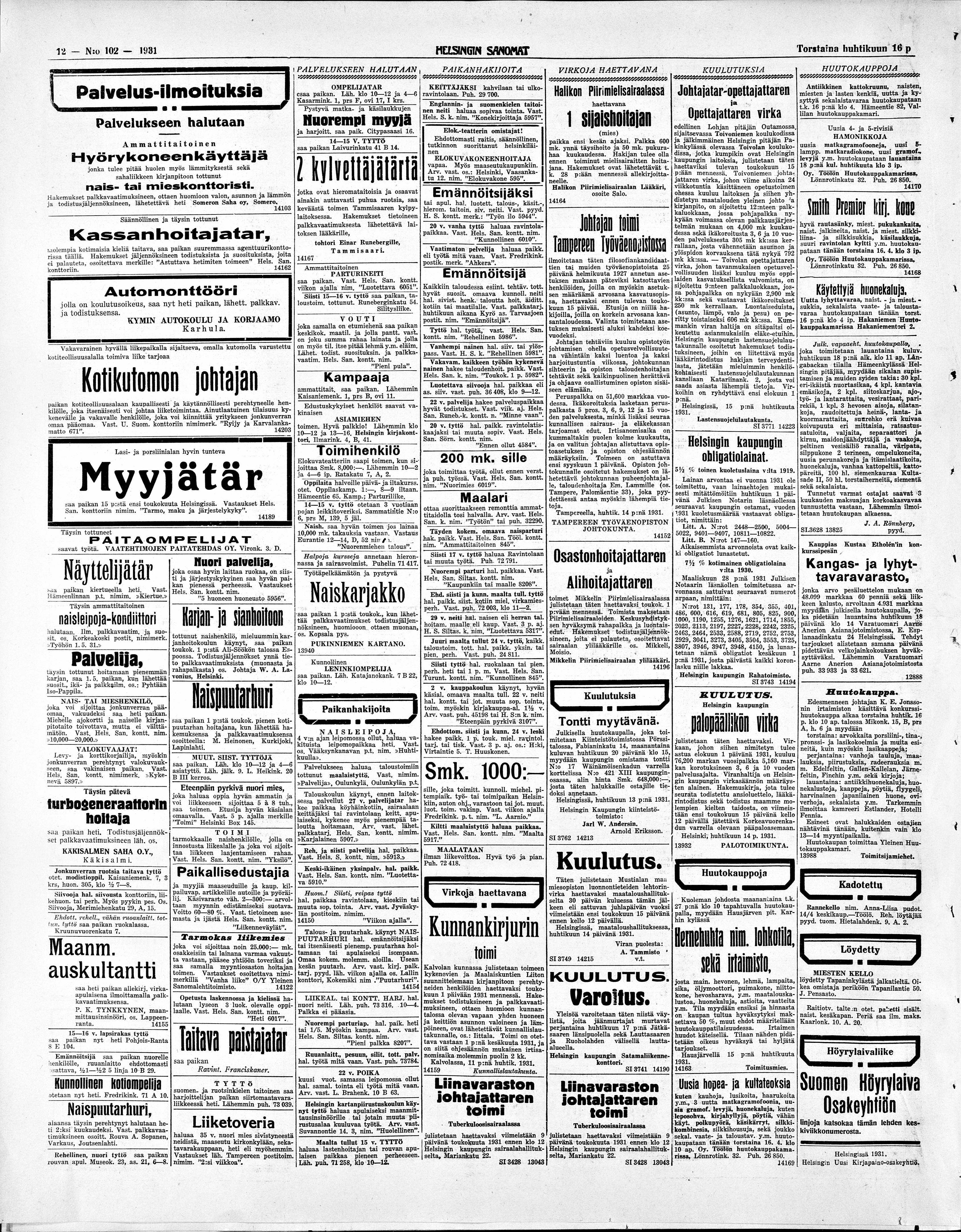 Helsingin Sanomat 16.4.1931, s. 12.(Linkki johtaa ulkoiseen palveluun)