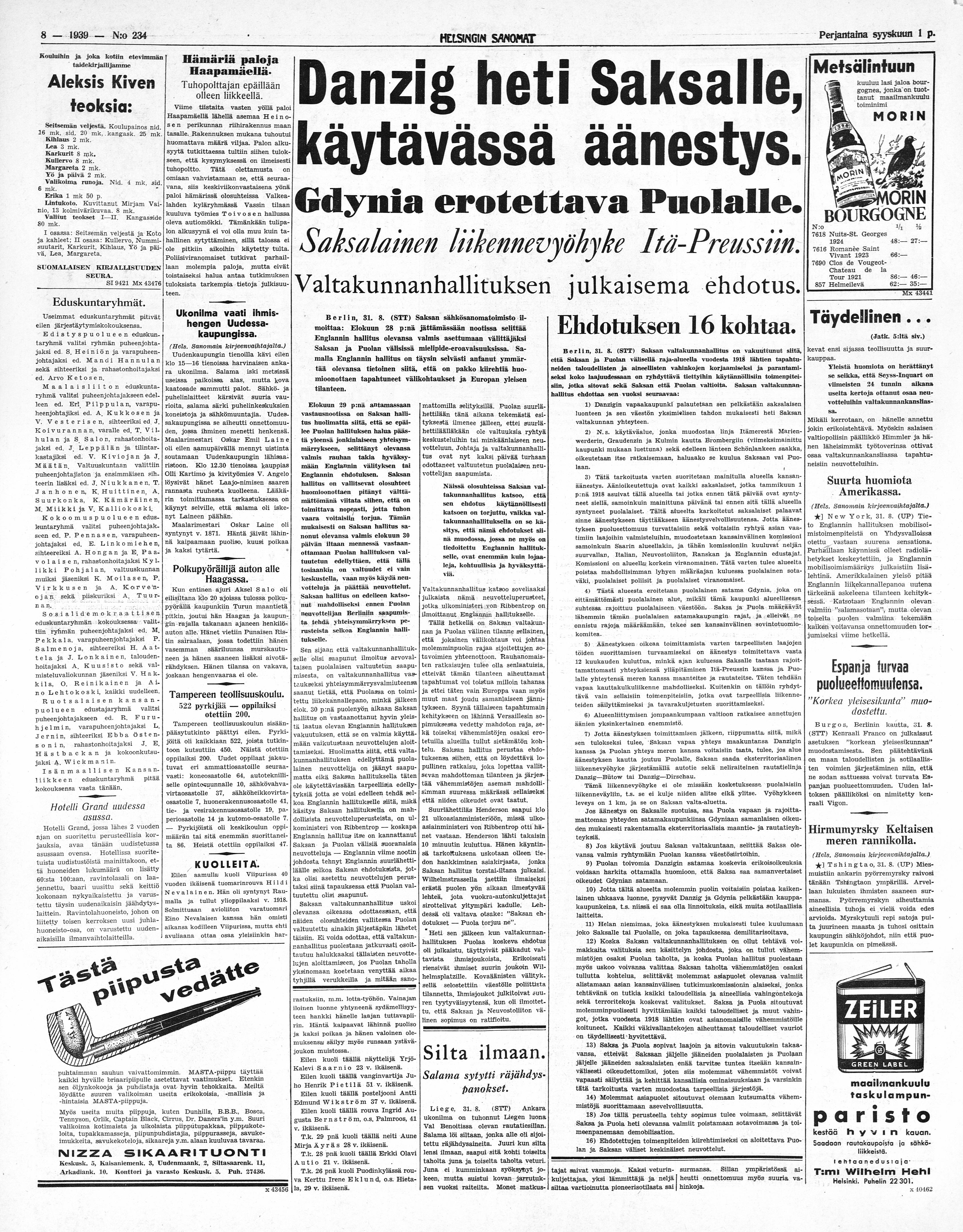 Helsingin Sanomat 1,9,1939. s. 8.(Linkki johtaa ulkoiseen palveluun)